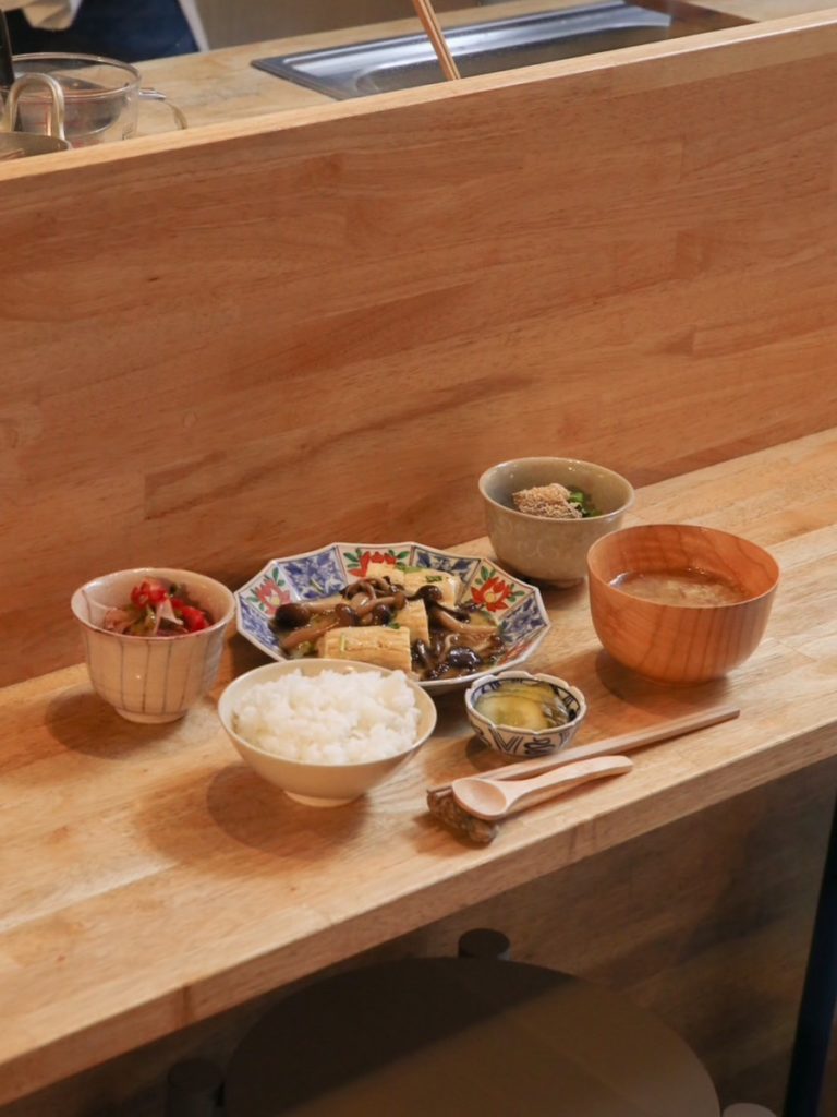 内容:sisisibasiの精進料理膳 税込2,000円(ごはん、漬け物、汁物、主菜、副菜3種ほど)